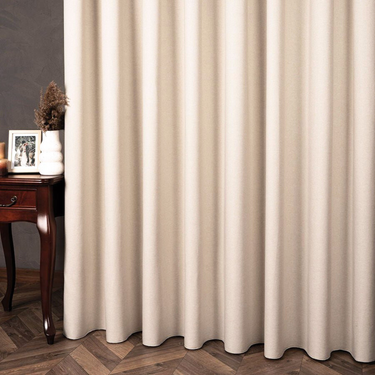 CYRUS er ét luksuriøst færdigsyet gardin med et tæt vævet stof, der falder tungt og elegant i markante waves. Gardinet er designet til at skabe en rolig belysning i hjemmet – og det tætte materiale dæmper effektivt lysindfaldet uden at mørklægge helt.
