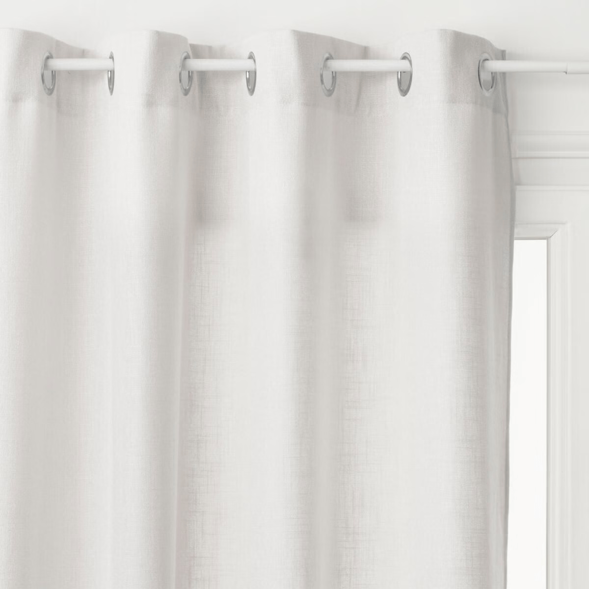 LEON er et lysdæmpende gardin i elfenbenshvid, der skaber en rolig stemning i hjemmet. Det tætvævede stof dæmper lyset på en behagelig måde uden at lukke det helt ude, og giver rummet et varmt og indbydende udtryk. De indbyggede metalringe gør det nemt at hænge op – også på gardinstang uden boring.